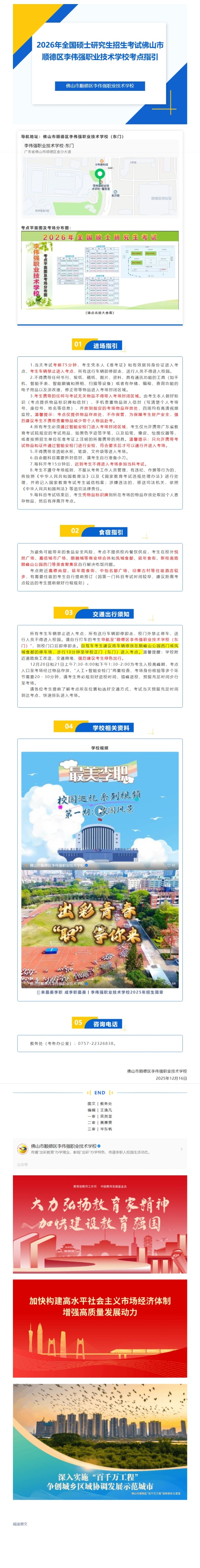 考点指引 | 2026年全国硕士研究生招生考试佛山市顺德区李伟强职业技术学校考点指引